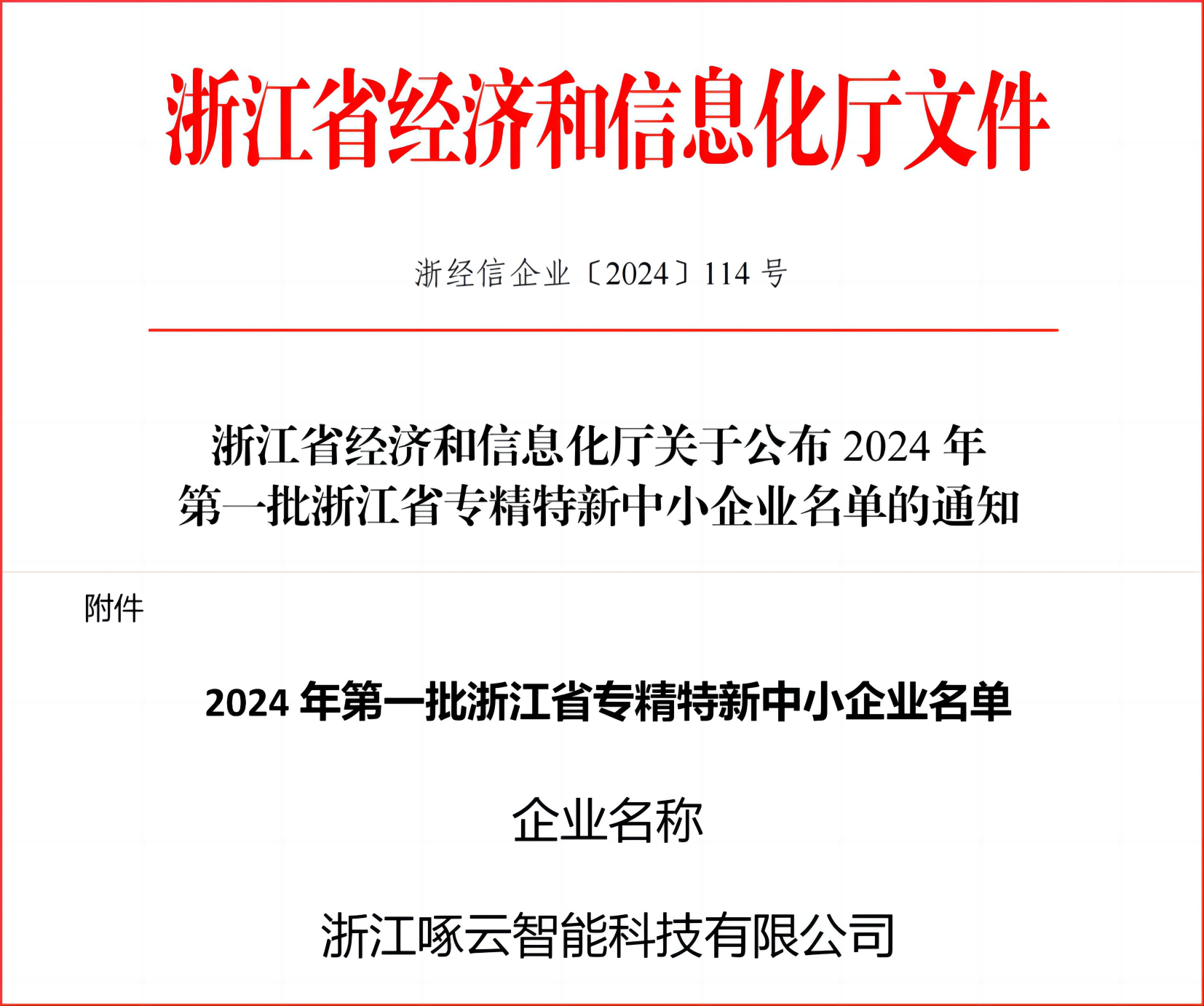 喜讯:啄云智能获评2024年浙江省专精特新中小企业