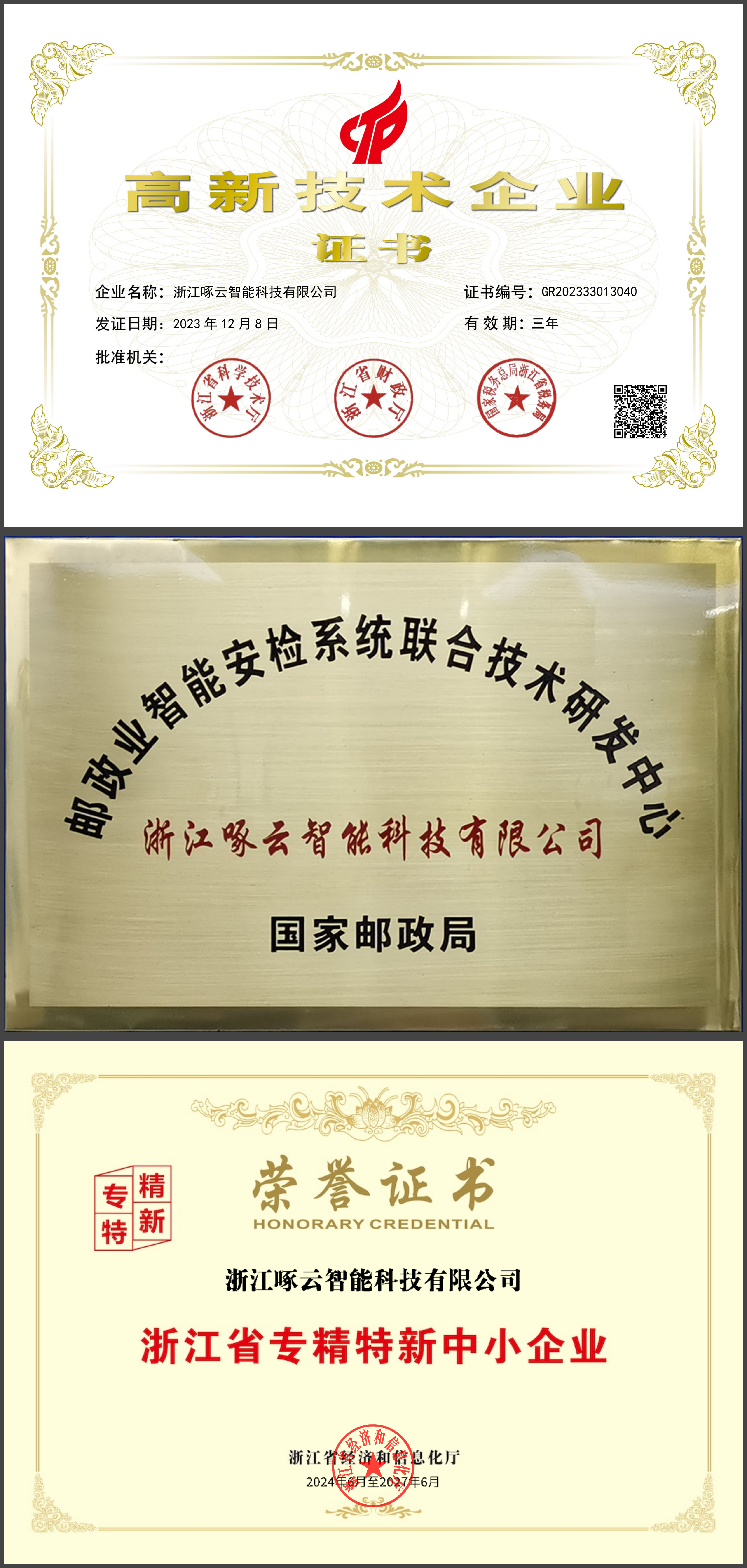 浙江啄云智能科技有限公司是一家集研发、设计、生产制造、技术服务为一体的国家高新技术企业,是国家邮政局邮政业智能安检系统联合技术研发中心依托单位、技术小组组长单位、智能安检行业标准起草单位、浙江省专精特新中小企业。